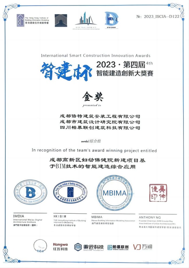 倍特建安BIM應用項目斬獲第四屆“智建杯”智能建造創(chuàng)新大獎賽金獎
