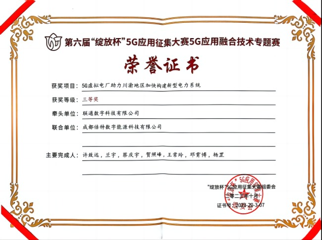 倍特?cái)?shù)能榮獲第六屆“綻放杯”5G應(yīng)用征集大賽三等獎(jiǎng)