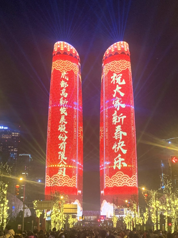 春節(jié)期間,成都高新區(qū)交子金融大街上,霓虹閃爍締造著燈光盛宴、璀璨燈球繹出流光溢彩,這景象與不遠(yuǎn)處的雙塔交相呼應(yīng),雙塔巨幕上繽紛綻放的煙花、喜氣洋洋的福字等聲光圖一一呈現(xiàn),以城市美學(xué)展現(xiàn)出城市的獨(dú)特魅力,讓蓉城市民感受到了濃濃的節(jié)日氛圍。瀏覽 : 10593分享