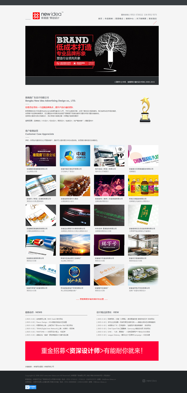 新畫面策劃設計機構(gòu)是專業(yè)的企業(yè)與品牌形象設計公司,7年行業(yè)服務歷程,近百個策劃設計服務案例。我們始終站在市場的角度,